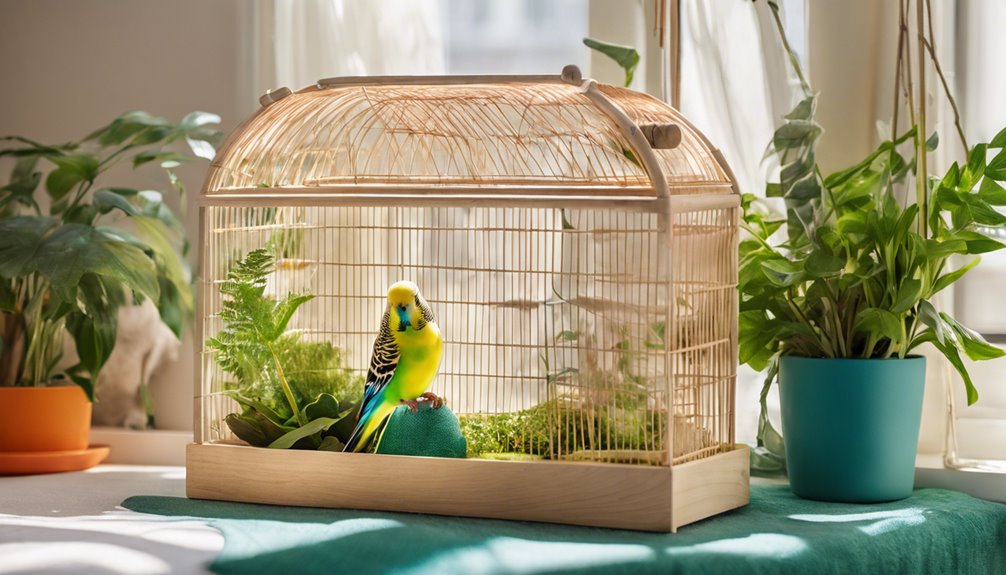 Aby bezpiecznie zaaranżować klatkę dla twoich nimf, zacznij od przestronnej prostokątnej klatki, najlepiej o długości co najmniej 80 cm. Użyj materiałów takich jak stal nierdzewna lub metal pokryty proszkiem dla większej trwałości. Ustaw naturalne drewniane gałęzie o różnej grubości i upewnij się, że pojemniki na jedzenie i wodę są odpowiednio zabezpieczone. Dodaj bezpieczne zabawki, takie jak huśtawki i liny do wspinania, i często je zmieniaj, aby utrzymać zainteresowanie. Upewnij się, że odstępy między prętami nie przekraczają 1,2 cm, aby zapobiec ucieczkom. Na koniec regularnie obserwuj ich zachowanie, aby upewnić się, że czują się komfortowo i bezpiecznie w swoim otoczeniu. Znajdziesz wiele wskazówek dotyczących poprawy ich szczęścia i zdrowia, gdy będziesz dalej eksplorować.