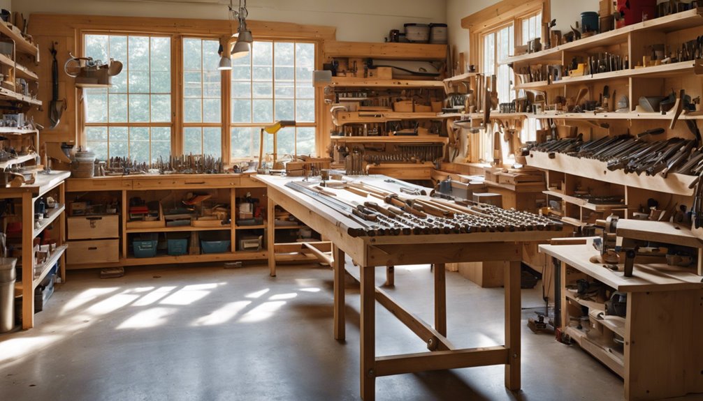 Aby zaaranżować wygodny warsztat stolarski, zacznij od wyboru dobrze wentylowanego miejsca z dużą ilością naturalnego światła. Upewnij się, że Twój stół roboczy jest umieszczony w centralnym miejscu, aby zapewnić łatwy dostęp, i zainstaluj odpowiednie oświetlenie nad głową. Zorganizuj swoje narzędzia za pomocą tablic pegboard lub oznakowanych rozwiązań do przechowywania, aby utrzymać porządek. Priorytetem powinno być bezpieczeństwo – noś PPE, miej apteczkę pierwszej pomocy i zapewnij odpowiednią wentylację w celu kontroli pyłu. Utrzymuj swoje miejsce pracy w porządku, aby zwiększyć skupienie i efektywność. Dzięki tym wskazówkom stworzysz funkcjonalny i przytulny warsztat, gotowy na Twój następny projekt. Jest jeszcze wiele do odkrycia, aby uzyskać jeszcze lepsze ustawienie.
